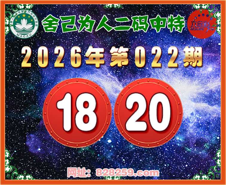 022期:【舍己为人】二码中特⚽【18.20】开:18