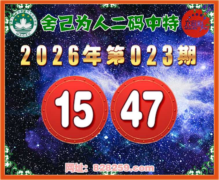 023期:【舍己为人】二码中特⚽【15.47】开:47