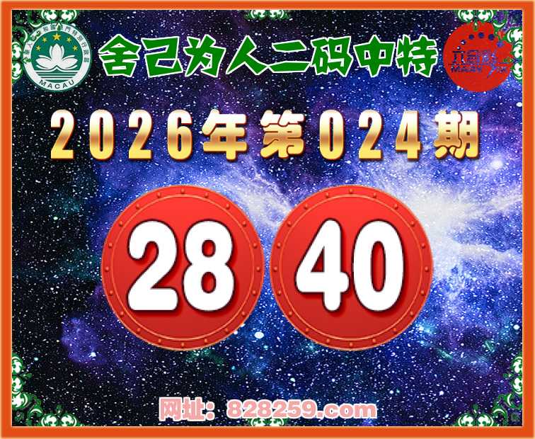 024期:【舍己为人】二码中特⚽【28.40】开:28