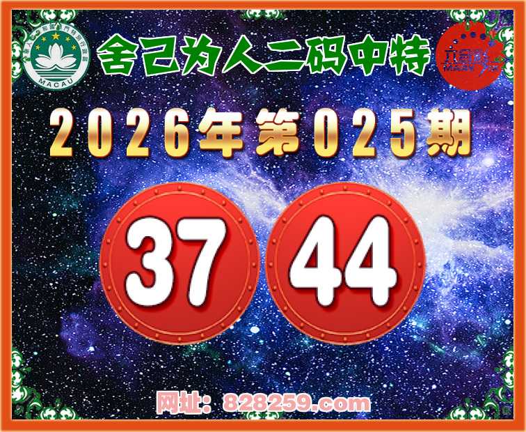 025期:【舍己为人】二码中特⚽【37.44】开:37