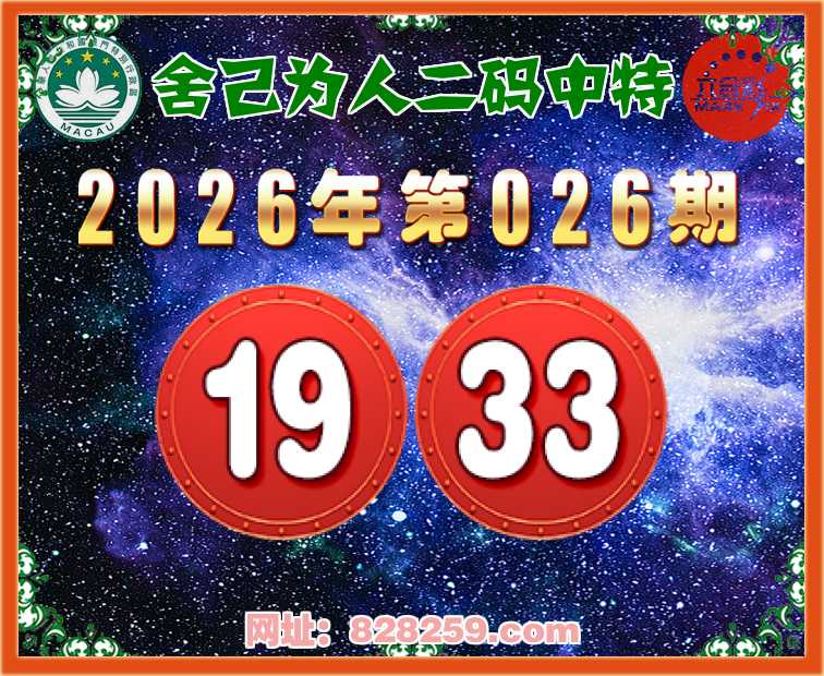 026期:【舍己为人】二码中特⚽【19.33】开:19