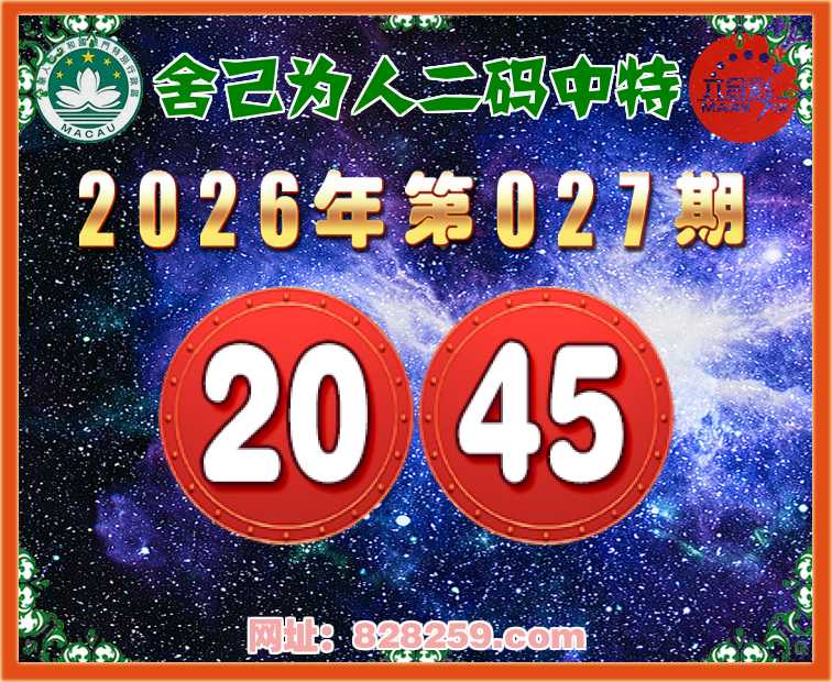 027期:【舍己为人】二码中特⚽【20.45】开:45